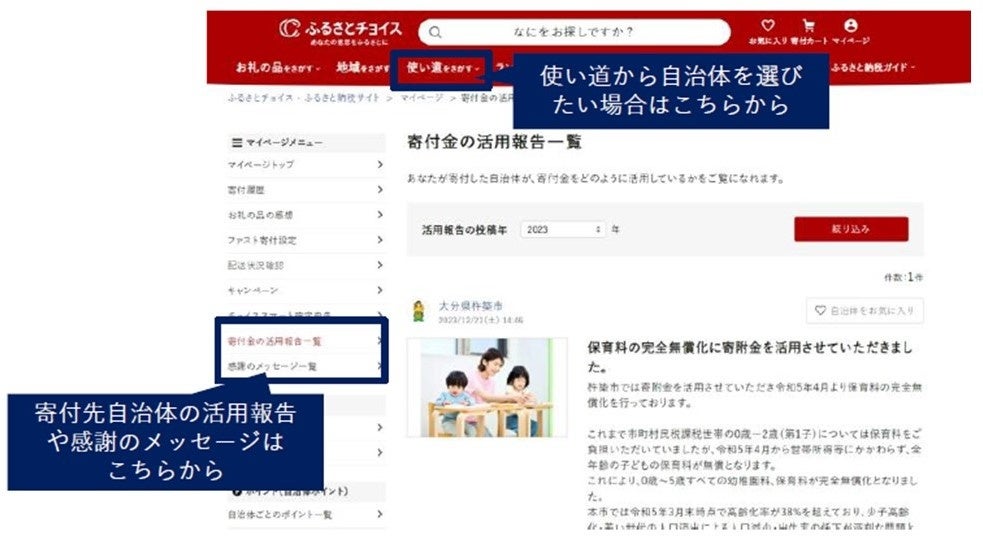 そして、昨年の寄付を振り返るこのタイミングを、自分が寄付した自治体が寄付金をどのように活用しているかを改めて知る機会としてはいかがでしょうか?