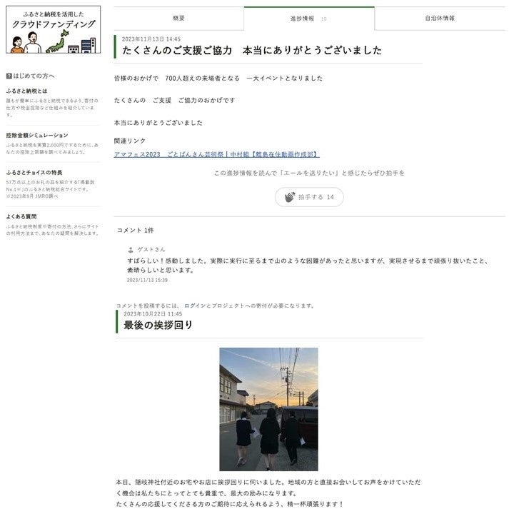 AMAFES2023 を開 催させてください!」のプロジェクトページより:https://www.furusato-tax.jp/gcf/2411
