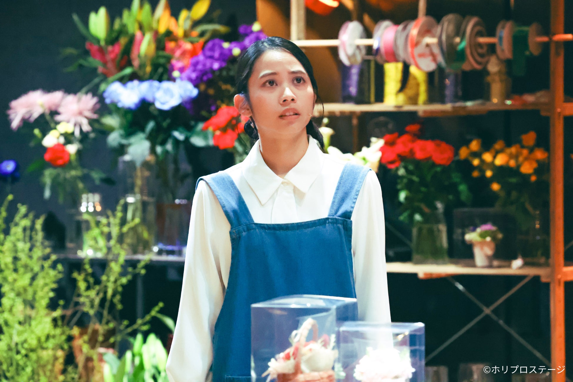 舞台は花屋のバックヤード。世界で400店舗を展開するパリのお花屋さんをテーマとしたフラワーショップ「MONCEAU FLEURS」とのコラボレーションによって、お花屋さんの世界観を彩る舞台美術がリアリティを持って実現した。