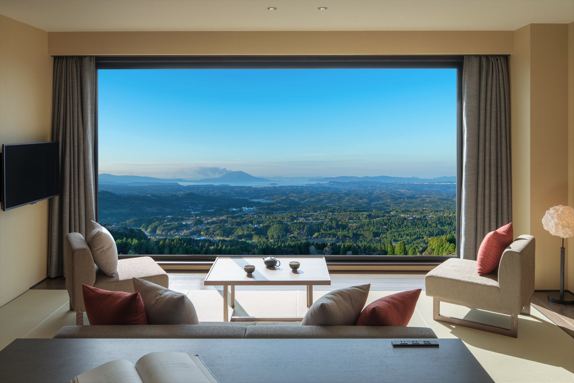 桜島をはるかに見渡す絶景の湯宿「界 霧島」では、2025年5月1日から6月20日までの間、新茶の季節に「霧島茶三昧滞在2025」を提供します。8種の霧島市認定ブランド茶に鹿児島県特産の本格焼酎を合わせたペアリングを嗜んだり、茶葉で育ったカンパチをお茶漬けにしたりして霧島茶の香り・旨み・技を満喫する宿泊プランです。滞在後には、お茶農家の元へ出向き新茶で釜炒り茶を作ります。