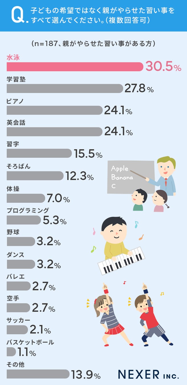 【ママパパに調査!】57%が、子どもの希望ではなく「親がやらせた習い事がある」