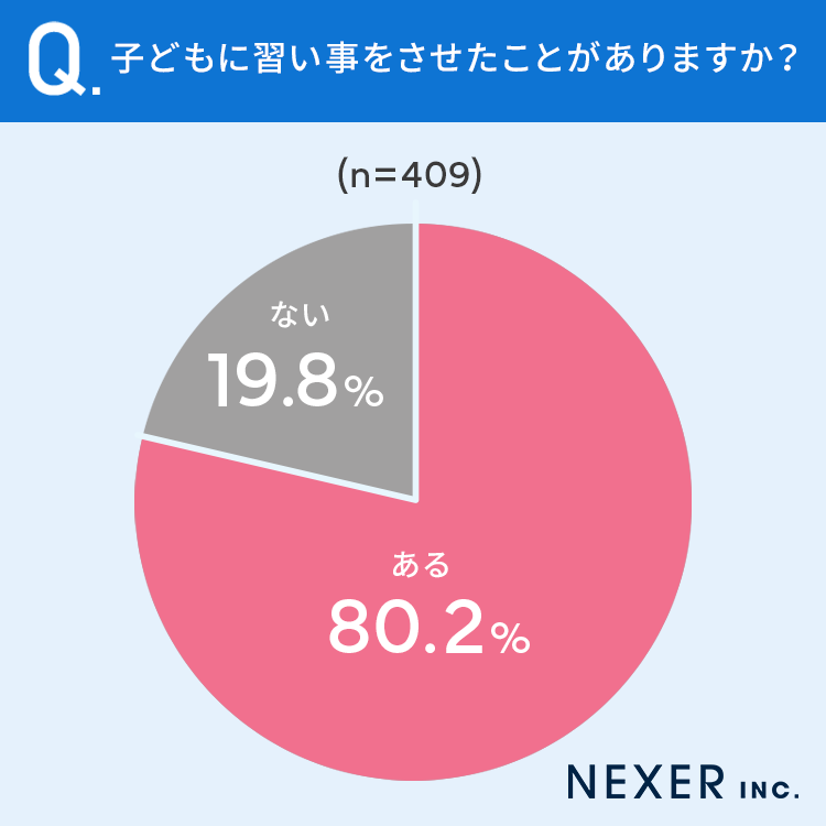 80.2%と8割以上の方が、子どもに習い事をさせている・もしくはさせていたと回答しています。