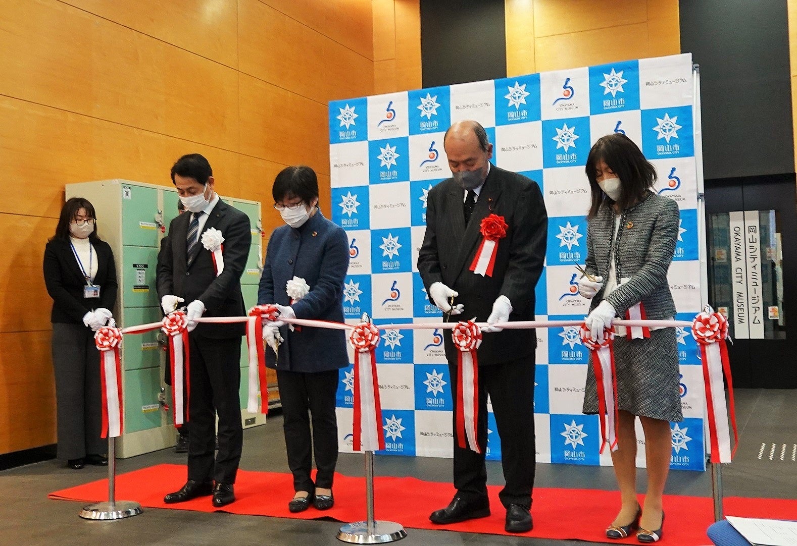 式典では、林恭生岡山市副市長、和氣健岡山市議会議長、本学高橋香代理事、松本直子文明動態学研究所所長によるテープカットで幕が上がりました。