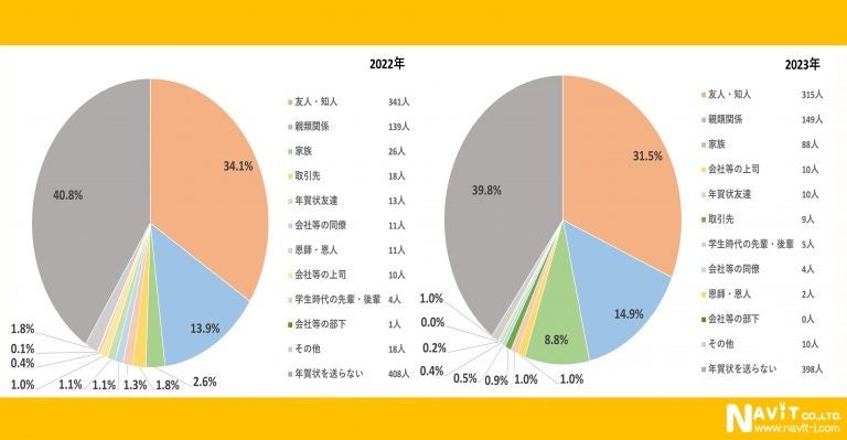 年賀状は親しい人へ送る方が多いということがわかります。