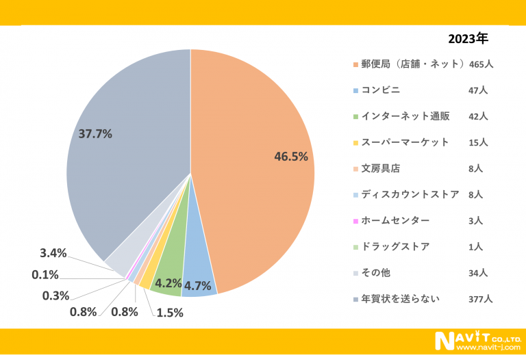 次に多かったのが毎日のように利用されている「コンビニ」で4.7%となっています。年賀状を送る枚数が少なくなっているので、コンビニで売っているくらいの枚数で十分に賄えるのでしょう。
