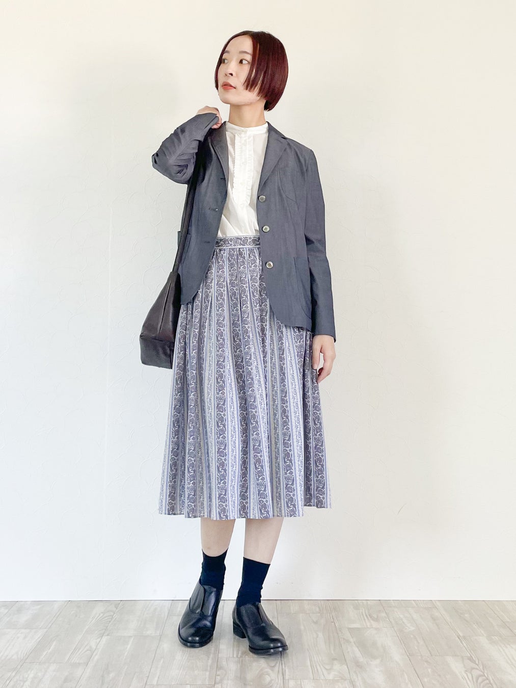 マニッシュなデニムジャケットを春らしいプリントスカートや、大人可愛いフリルブラウスと合わせて、やわらかい印象に。ジャケットのネイビーに合わせてブルーでまとめれば、ジャケットの単品コーデも簡単にまとまります。