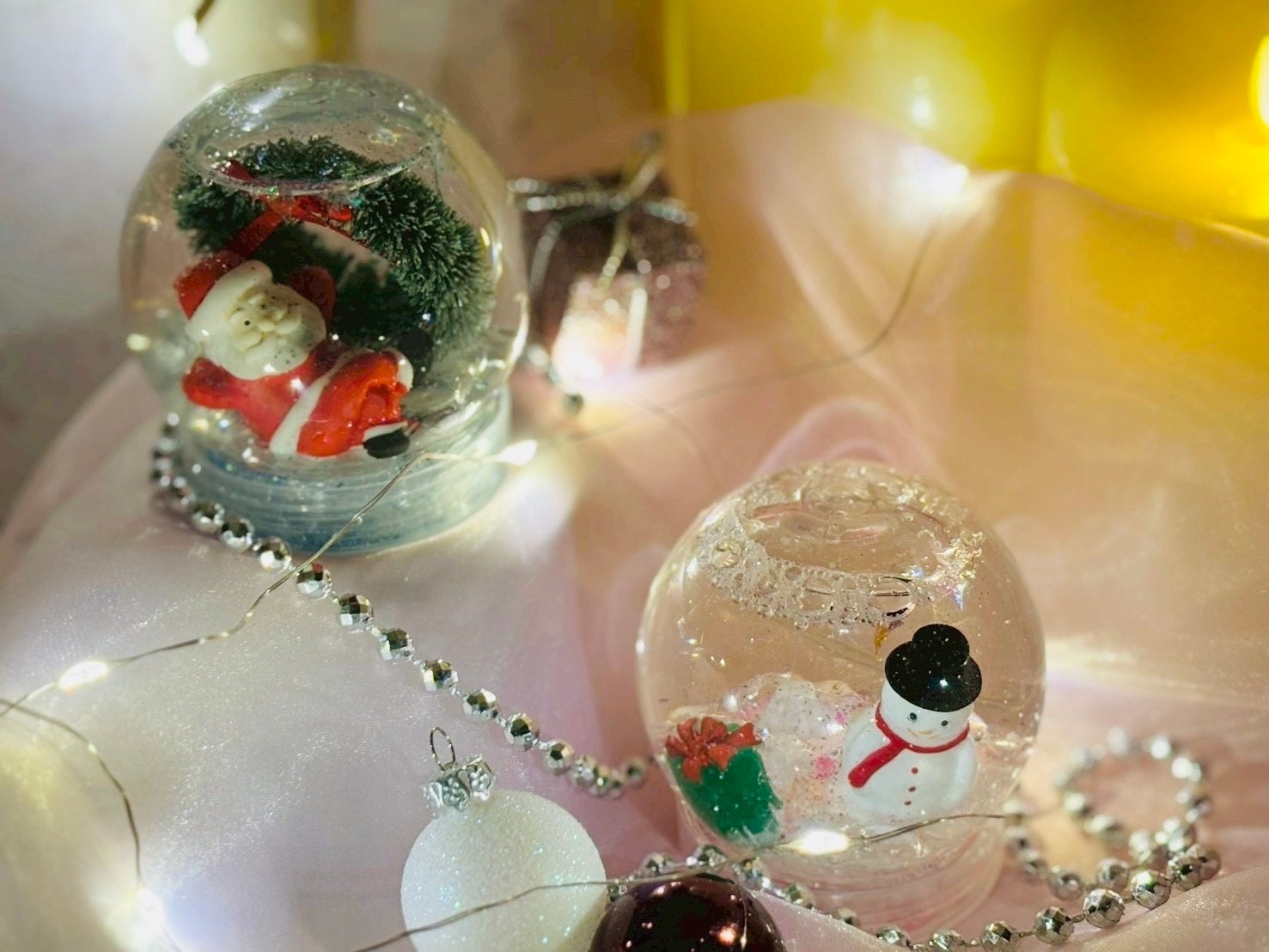 クリスマスを象徴するミニチュアモチーフを選び、オリジナルのスノードームを作成。