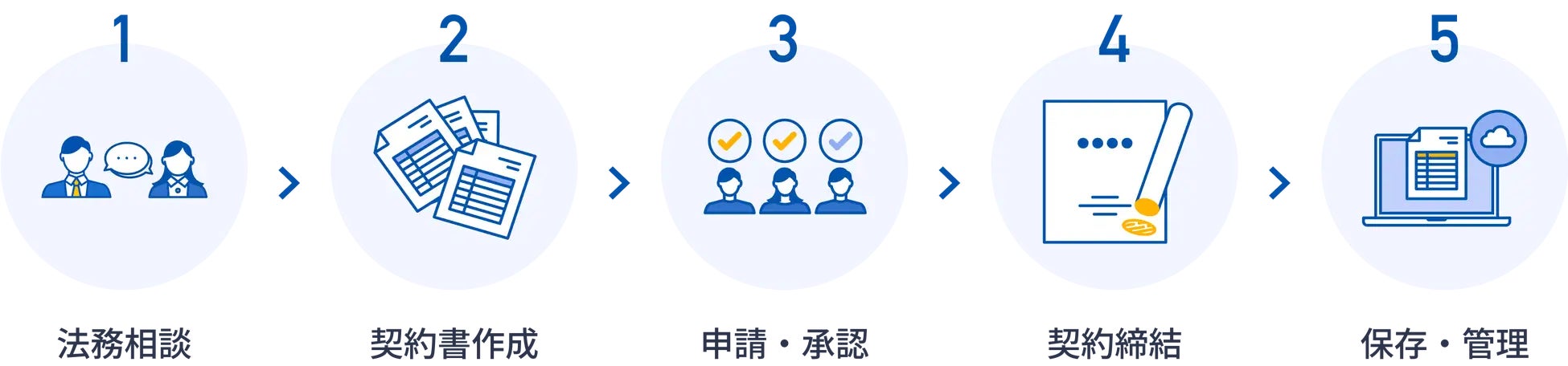 『マネーフォワード クラウド契約』は、契約書についての法務相談から作成、申請・承認、契約締結、保存、管理までクラウド上で完結できる電子契約・契約書管理サービスです。紙の契約書を発行する際に必要な印刷・製本・押印・郵送などの手間や時間、コストを削減できるだけでなく、紙の契約書や複数の電子契約サービスで締結した契約書の一元管理を実現します。また、契約データを債務支払や人事管理に連携させることで、契約書管理にまつわる業務を効率化し、バックオフィス全体の生産性向上を実現します。