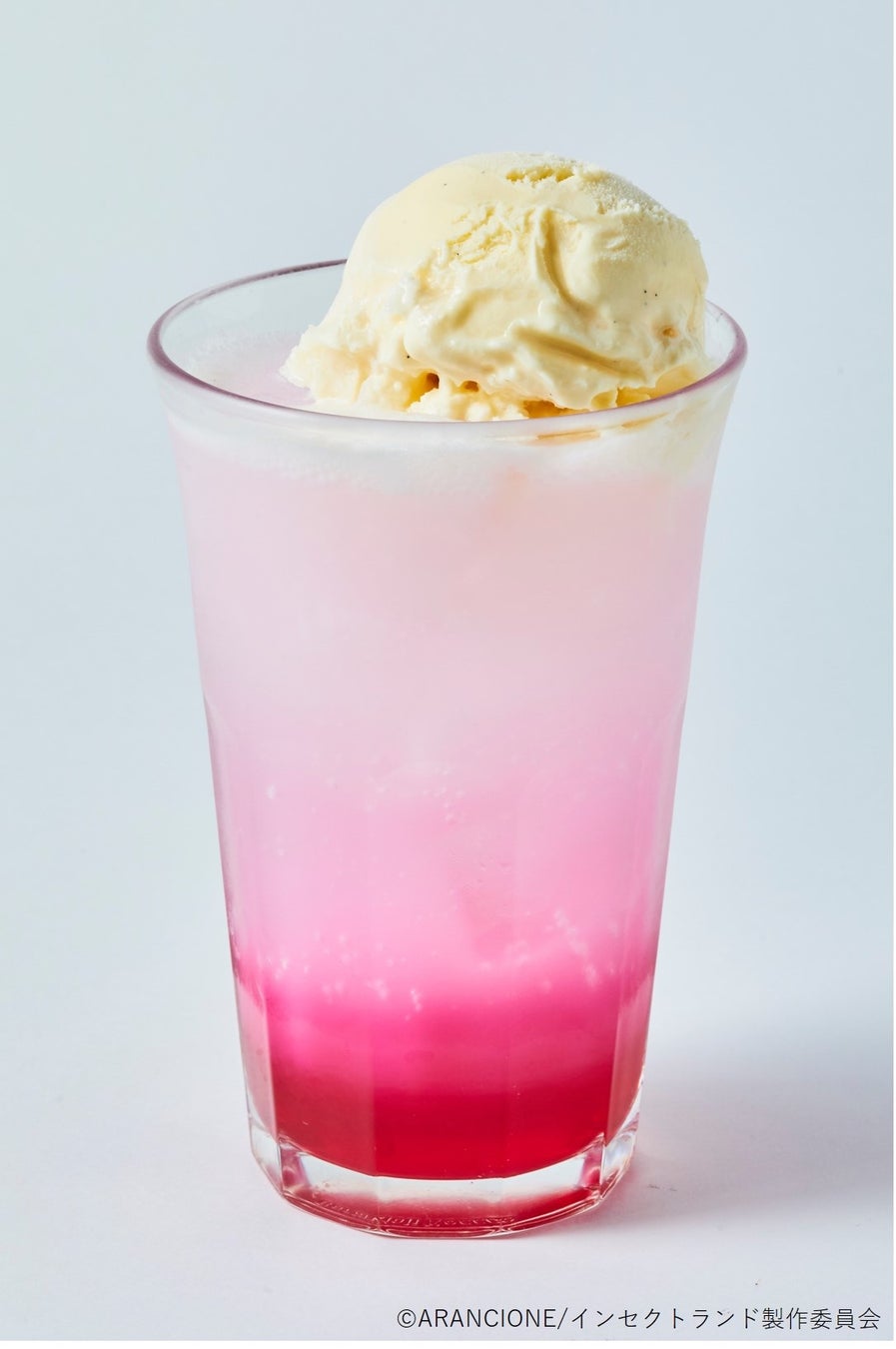 花々をイメージした赤・ピンク色のクリームソーダ。ストロベリー風味の乳酸菌飲料入り。