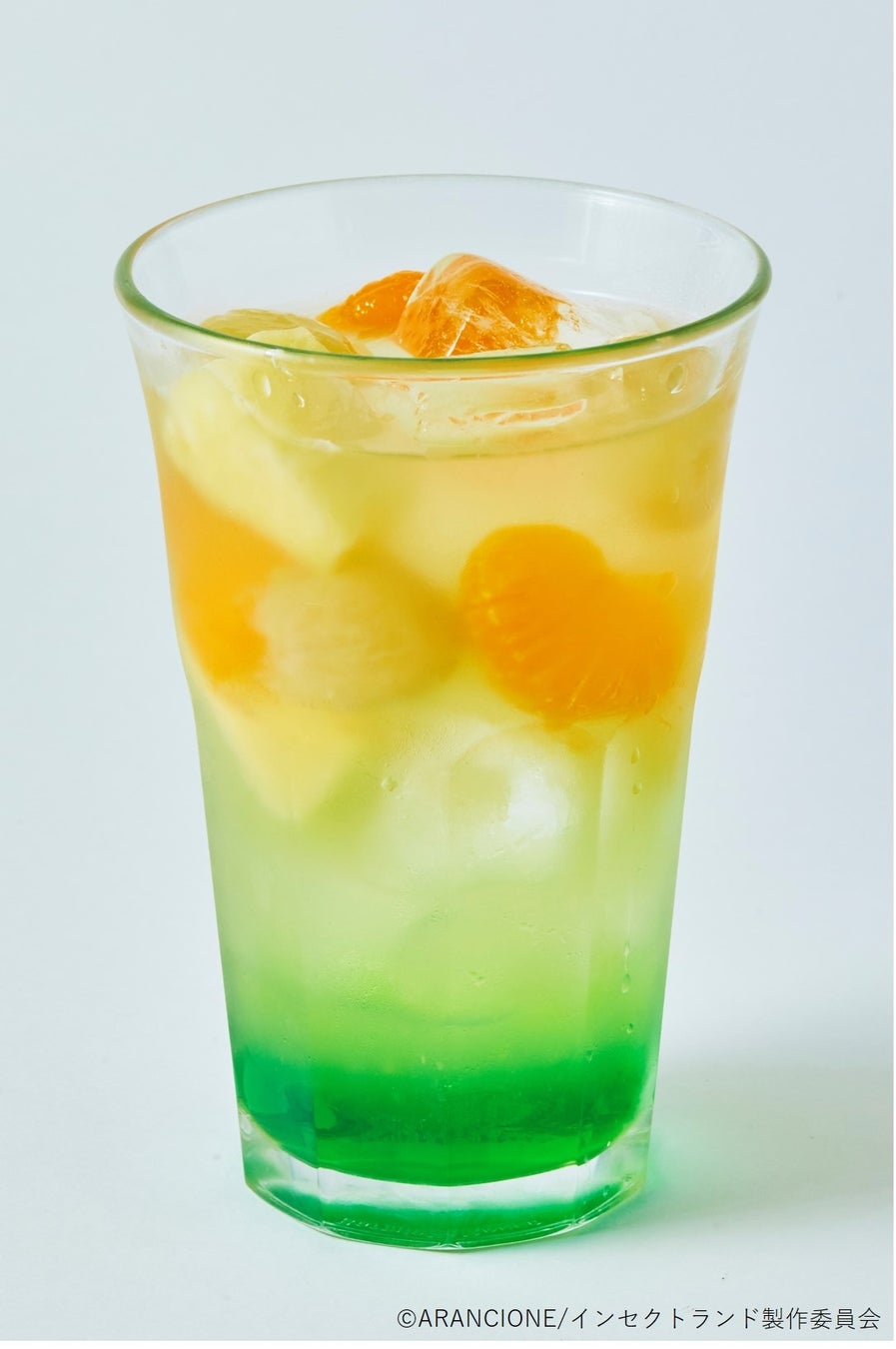 はらっぱに夏色の草木が漂うイメージのフルーツinジュース。メロン風味のシロップに100%リンゴジュースを合わせて。