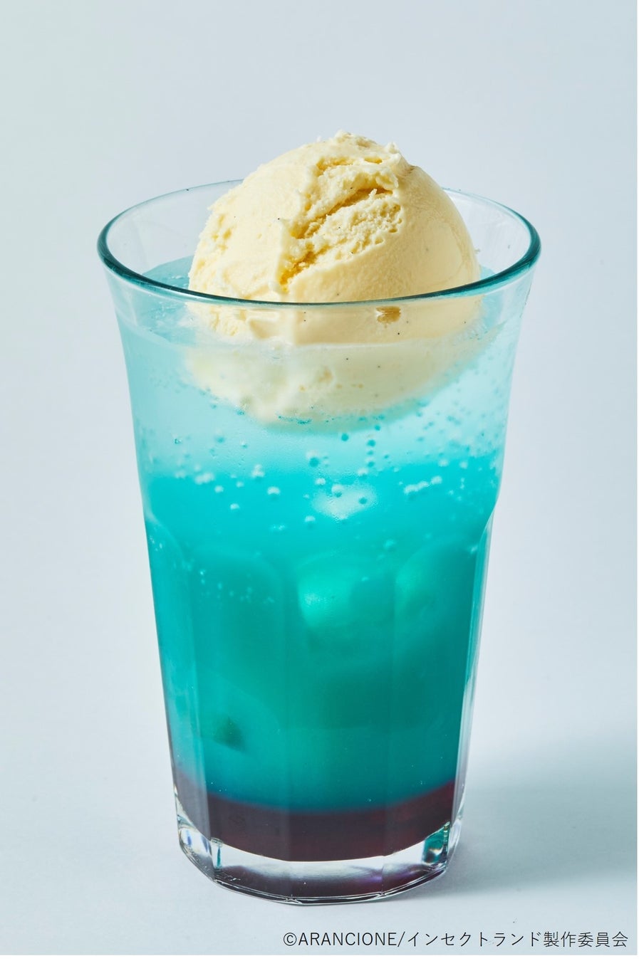スッキリな青空をイメージしたクリームソーダ。パイナップルソーダにバタフライピー・ブルーハワイのシロップ入り。