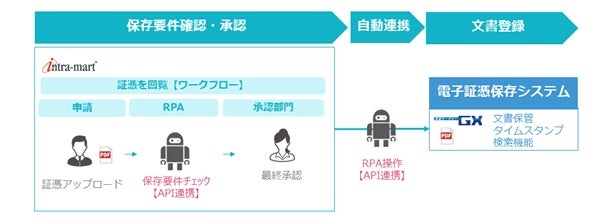 電帳法に関連する取引書類の申請から電子証憑保存システムへの連携までの処理プロセス全体を電子化・自動化する仕組みを提供