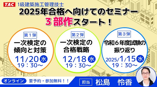 【TAC1級建築施工管理技士】2025年合格へ向けてのセミナー3部作スタート!
