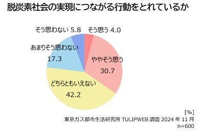 脱炭素社会の実現に関心がある一方で、実際に行動できている人は約3割、どちらともいえないと答えた人は約4割でした。どのような行動が脱炭素社会の実現につながるかわからない人が多いようです。