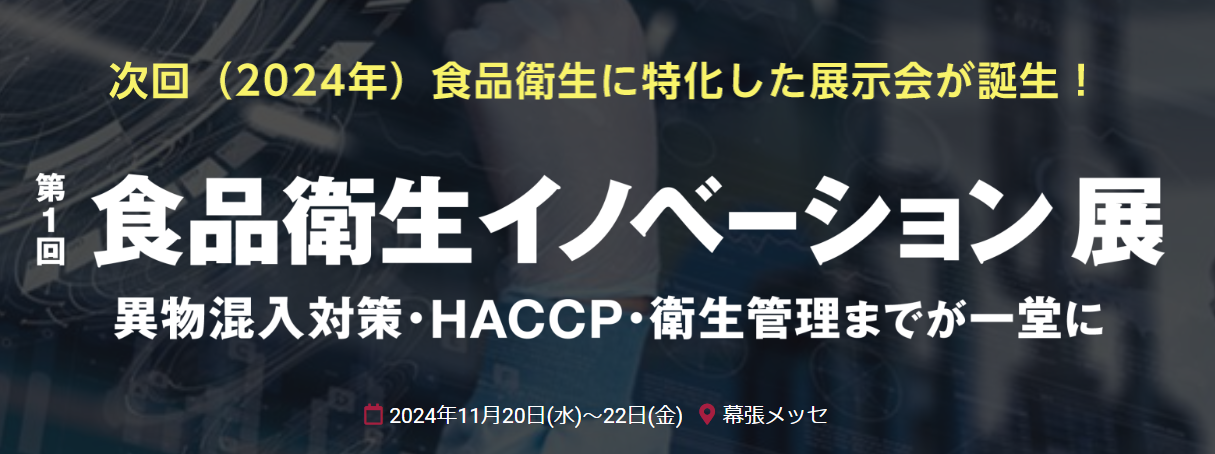第1回 食品衛生イノベーション展 会期:2024年11月20日(水)~11月22日(金) 会場:幕張メッセ