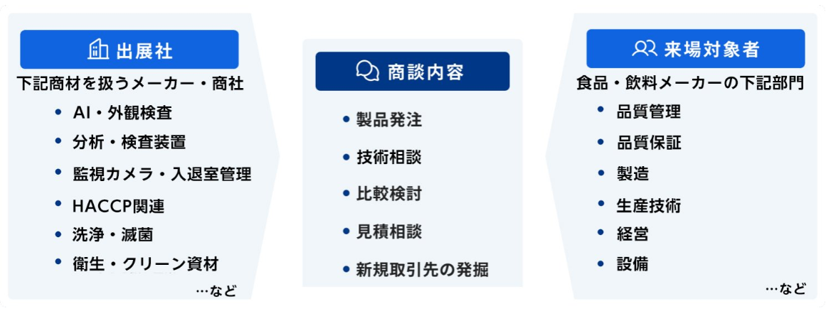 「食品衛生イノベーション展」は、食品・飲料メーカーの・品質管理・品質保証などの部門の方々との効率的な商談の場として初回から盛大に開催いたします。