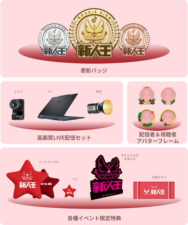 今回の「新人王決定戦」では、新たに音楽クリエイター向けの「音楽部門」と、視聴者向けの「応援部門」を開設しました。参加クリエイターはイベント限定ギフトの獲得やデイリーミッション、ランキングを通じて「新人王」の称号と特典獲得を目指します。本イベントで「新人王」の称号を獲得したクリエイターには、年末決戦への出場権が与えられます。(※2) そして、年末決戦で輝いたTop3のクリエイターは「TikTok LIVE All Stars 2025 (仮)」にて「TikTok LIVE 2025 新人王」として表彰される予定です。(※3)