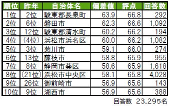 ※浜松市浜名区の昨年順位は、浜松市浜北区の昨年順位を参考値として表示しています。