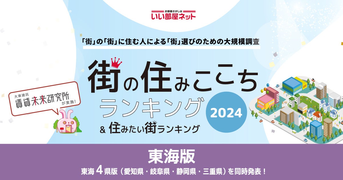 いい部屋ネット「街の幸福度 & 住み続けたい街ランキング2024<静岡県版>」(街の住みここちランキング特別集計)発表