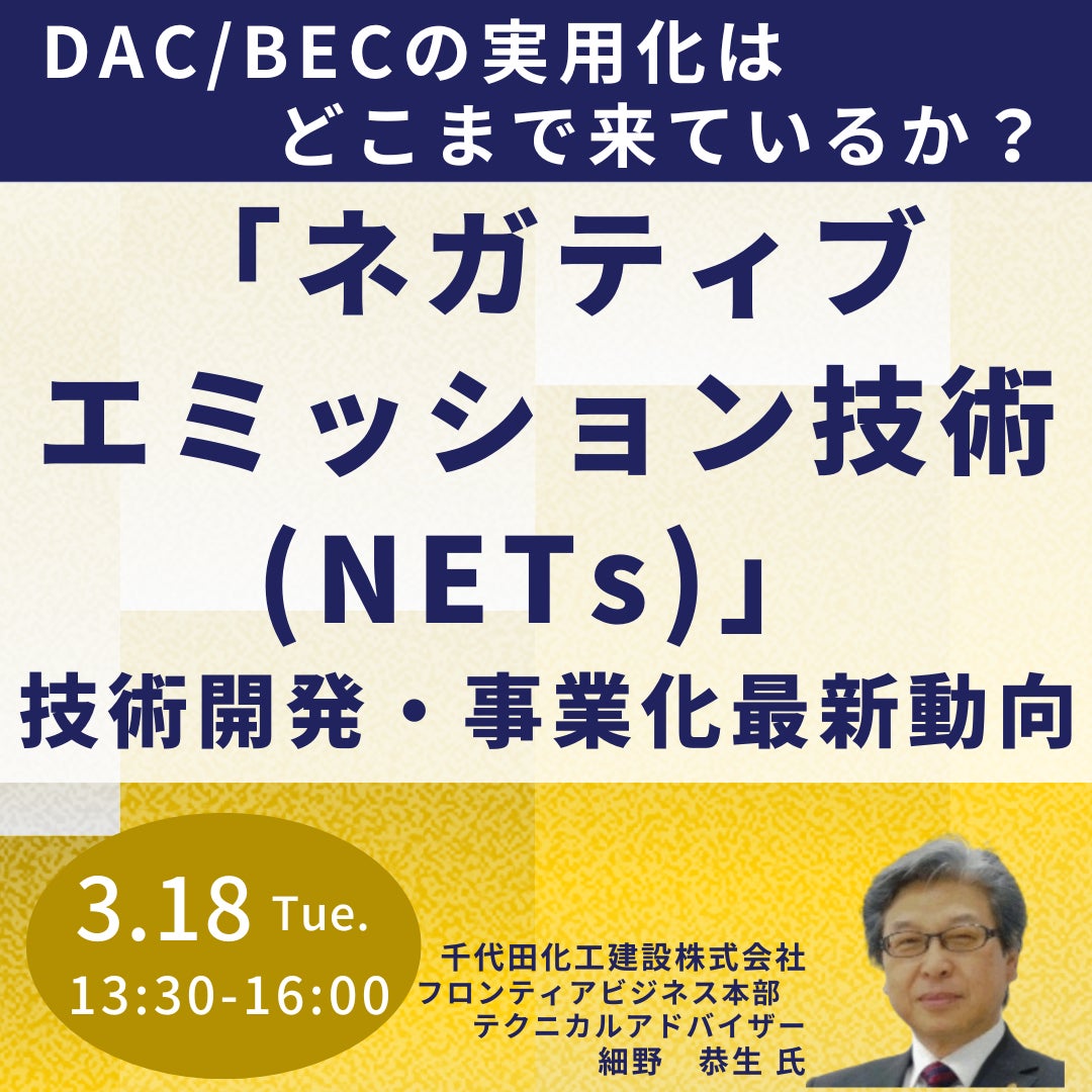 【JPIセミナー】「”ネガティブエミッション技術(NETs)”その技術開発・事業化最新動向について」3月18日(火)開催