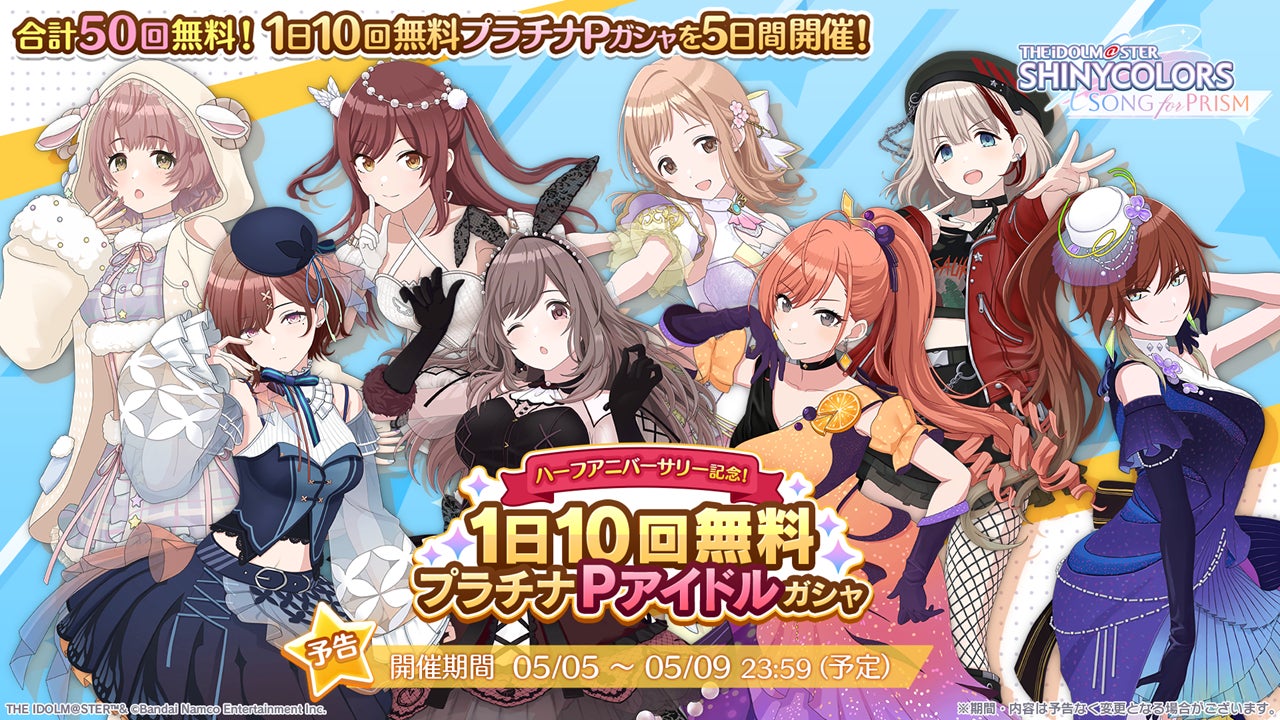 ・ハーフアニバーサリー記念!1日10回プラチナ無料Pアイドルガシャ
