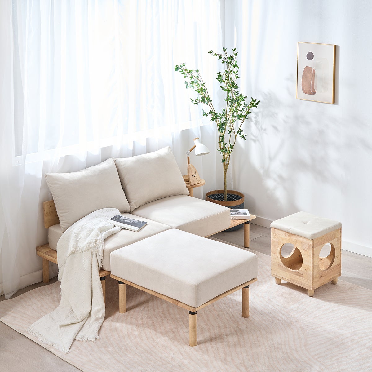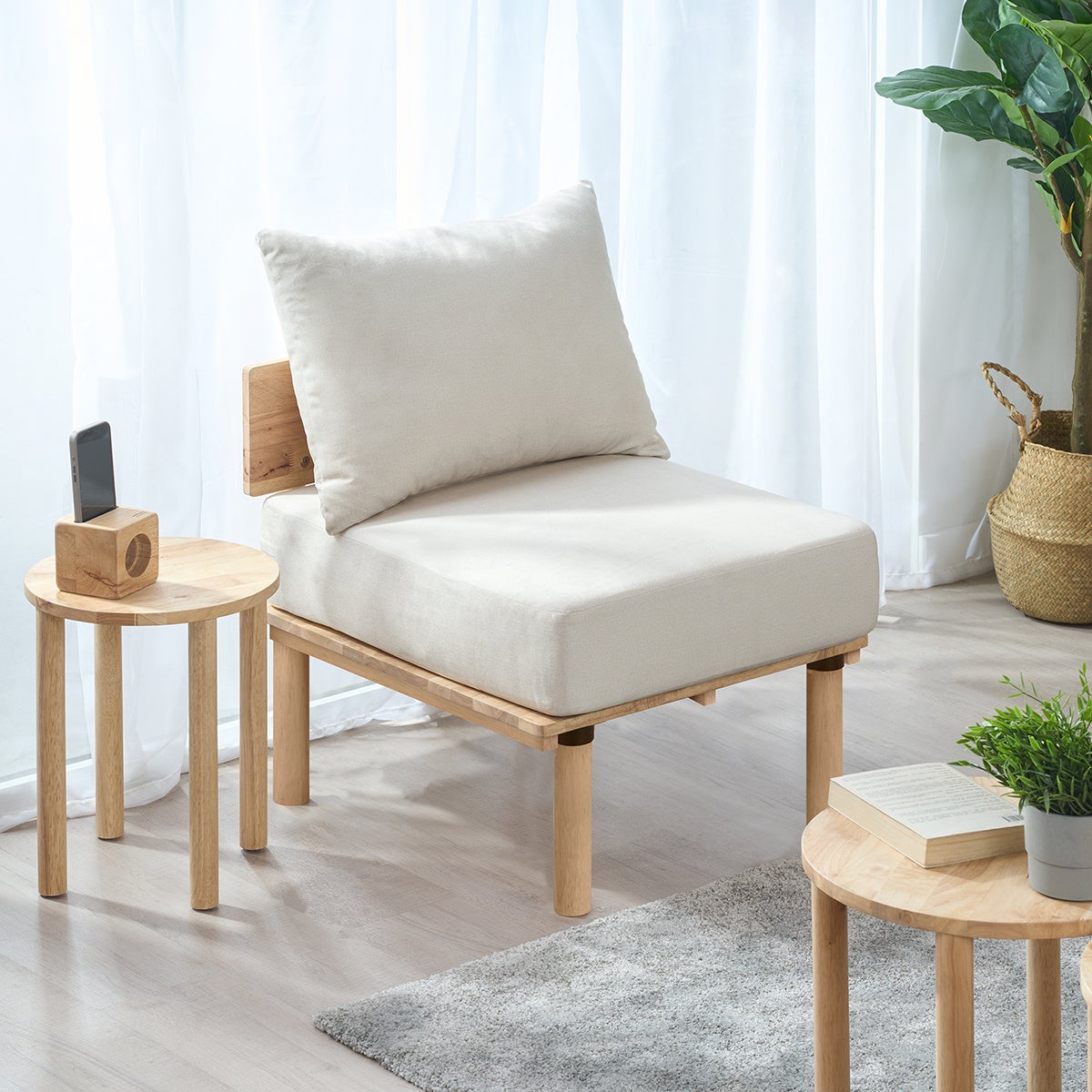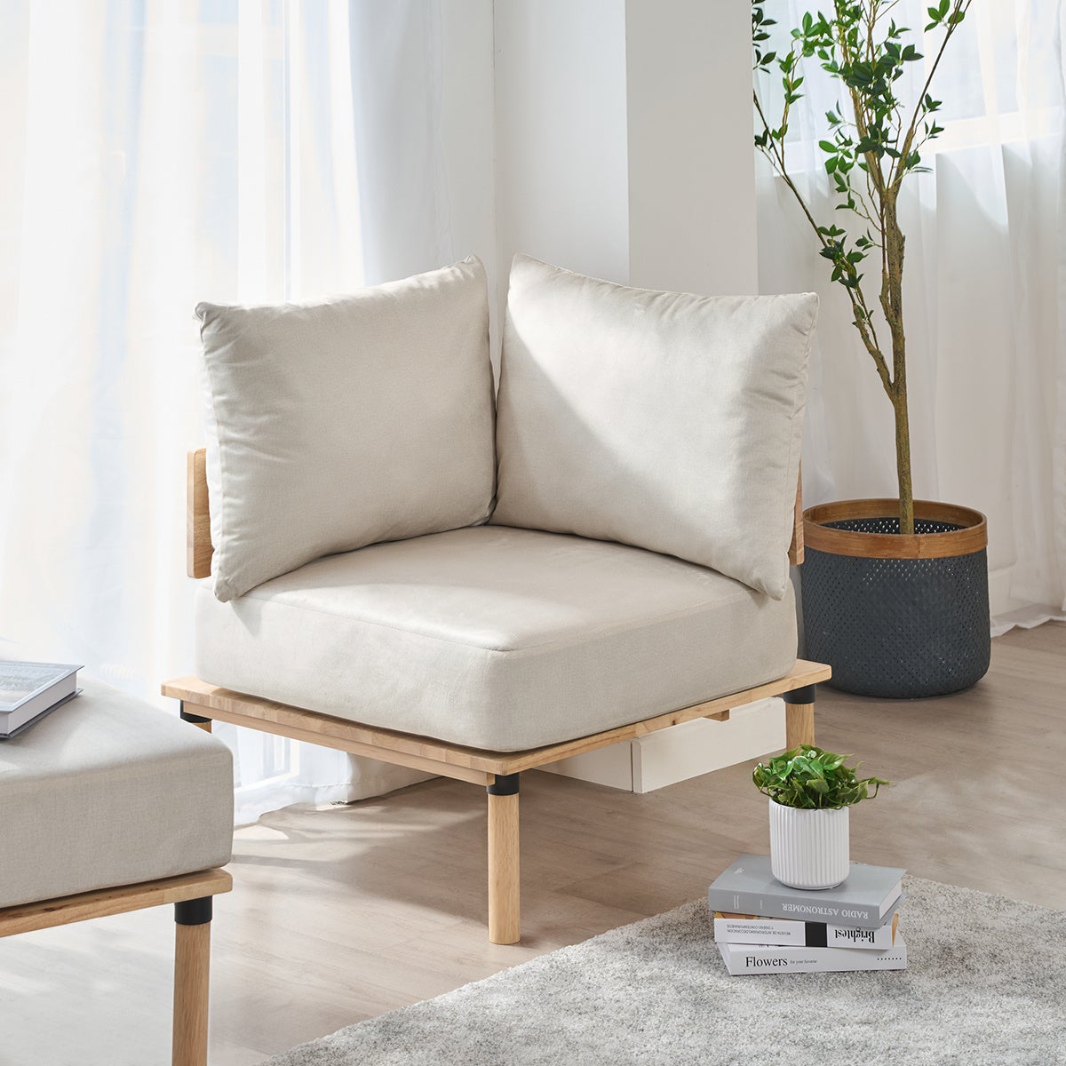 今回、リビングの主役となるソファがシリーズに加わりました。シリーズの特徴である天然木の美しさや温もりはそのままに、2人掛け・1人掛け・コーナー・オットマンを組み合わせることで、お部屋のスペースやご家族の人数に合わせてお使いいただくことができます。