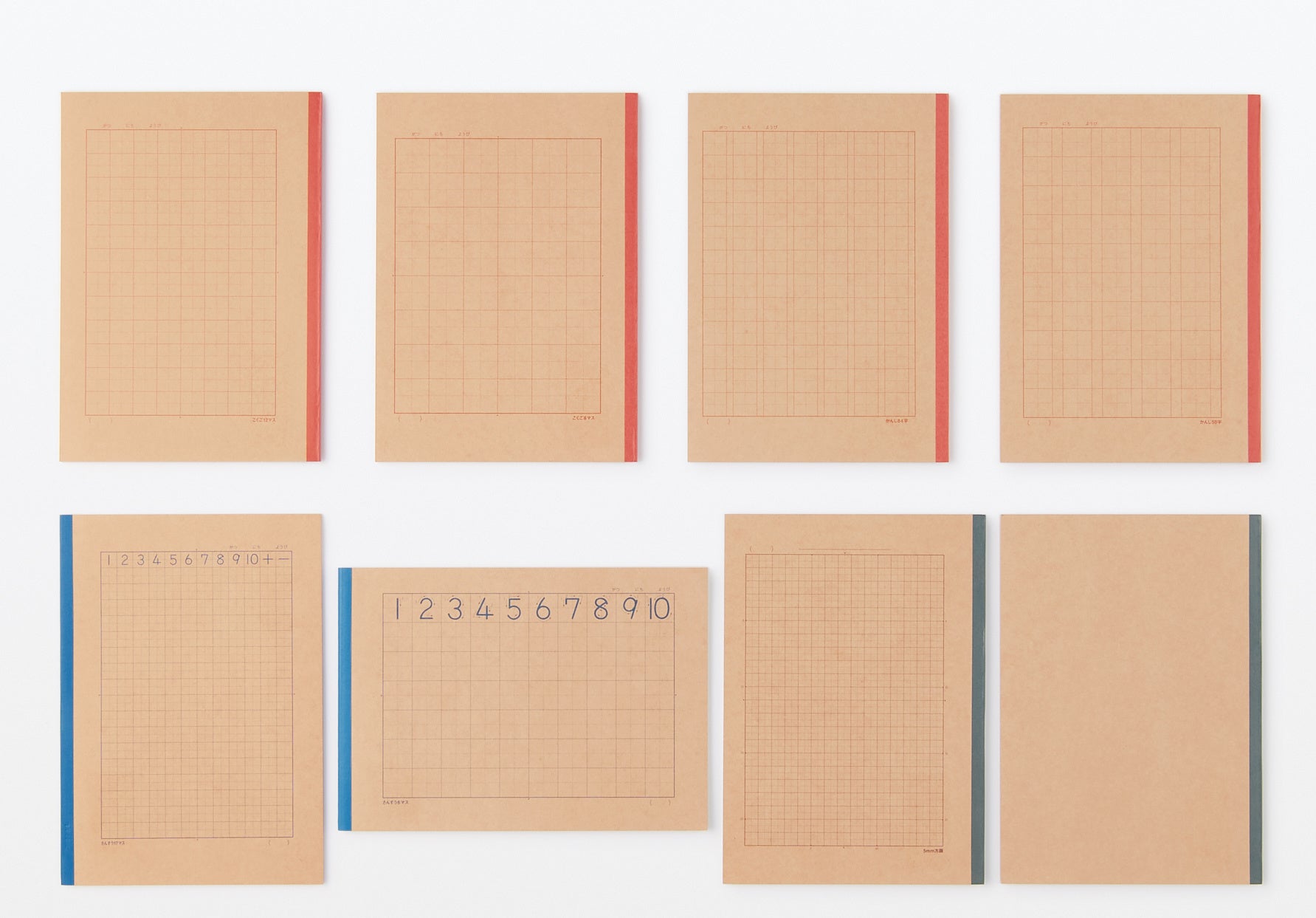 漢字(50字・84字)、こくご(8マス・12マス)、算数(6マス・17マス)、自由帳、5mm方眼の計8種類の品揃えです。特に5mm方眼は小学校中・高学年の幅広い科目に使いまわすことができるデザインで、汎用性が高くなっています。