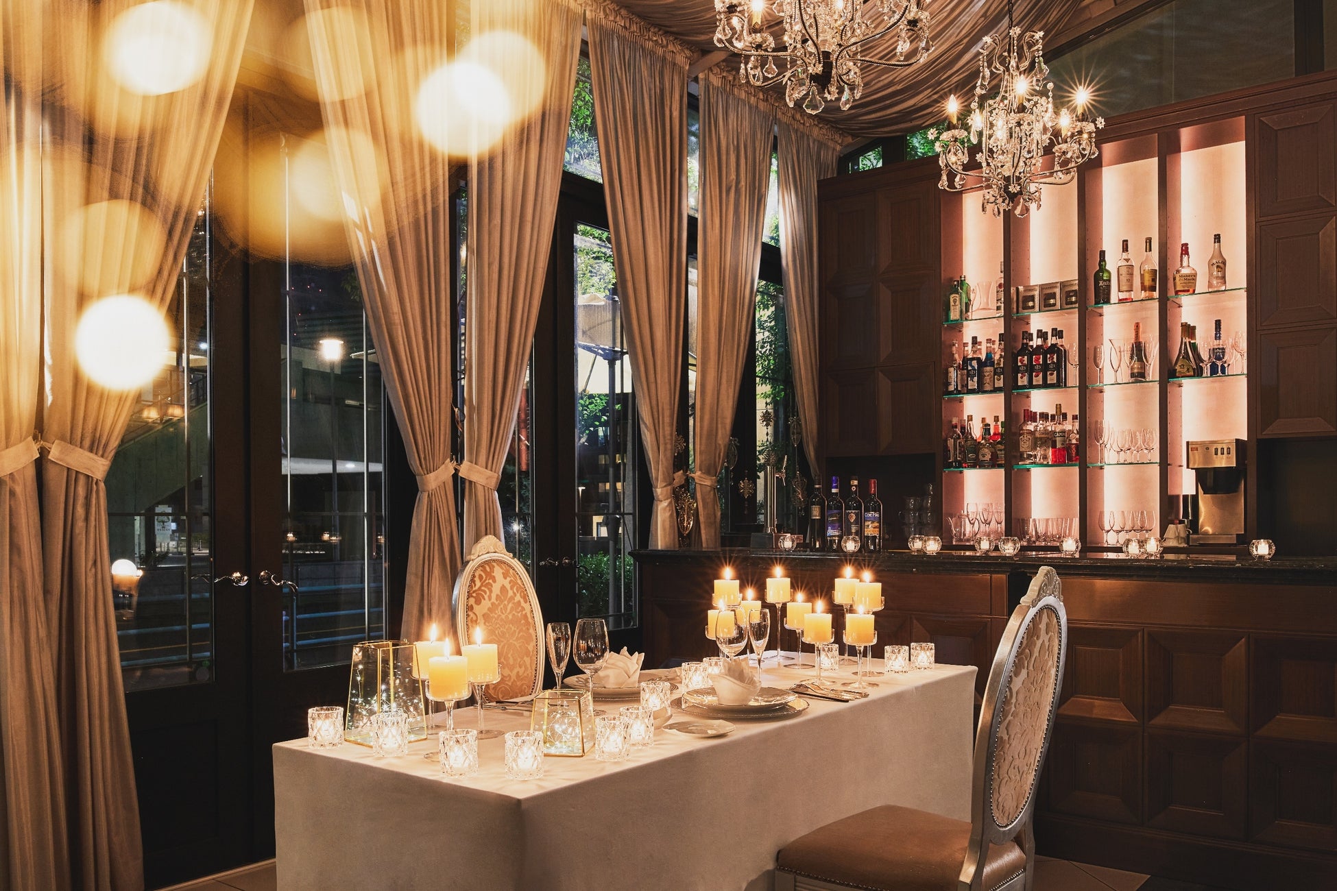 ・テラス付個室(キャンドルライトアップ) ・クリスマスディナー(2名分) ・乾杯用グラスシャンパン(2名分) ・花束 ・アニバーサリーフォト