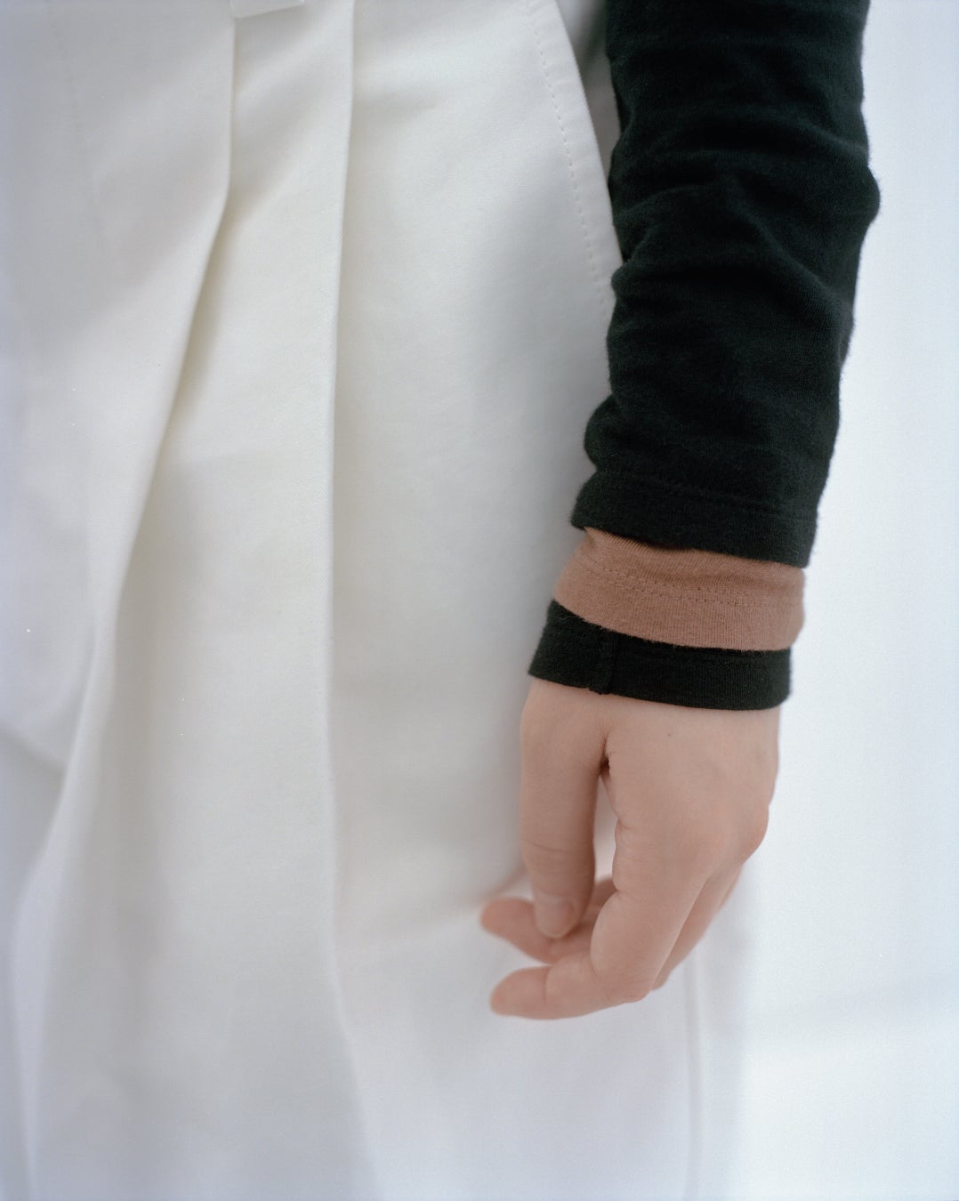 一方のクルーネックは、身体にほどよくフィットするコンパクトなサイズ感で、ネックラインは開きすぎず詰まりすぎない絶妙なバランスに設定。長めの袖丈により、一枚でさらりと着ても美しく決まるのはもちろん、ヘンリーネックやカーディガンなどとのレイヤードにも最適。着回し力の高いアイテムに仕上がっています。
