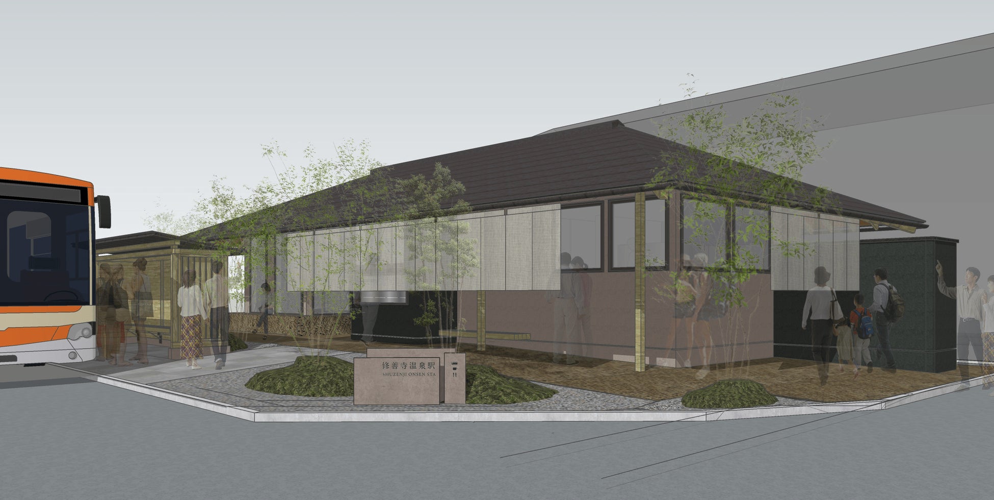 バスのりば「修善寺温泉」は、ミシュラン・グリーンガイド・ジャポンで2つ星評価を得ている修禅寺や竹林の小径など、伊豆を代表する観光スポット「修善寺温泉街」の玄関口です。国内外のお客さまに主に観光利用いただく場所ですが、築43年のバスのりばは、趣はありながら、待合スペース・お手洗いが老朽化していました。