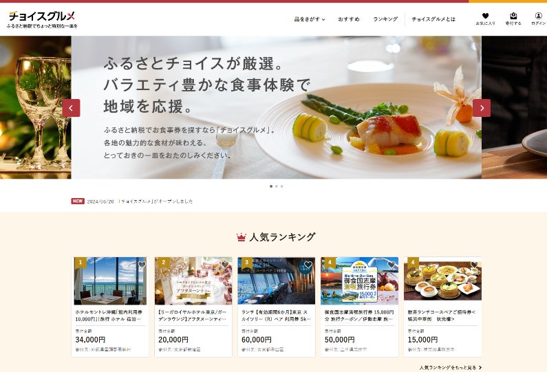 ふるさと納税で注目高まる、レストランで地域の絶品グルメ体験“お食事券型”のお礼の品専門サイト「チョイスグルメ」を新オープン