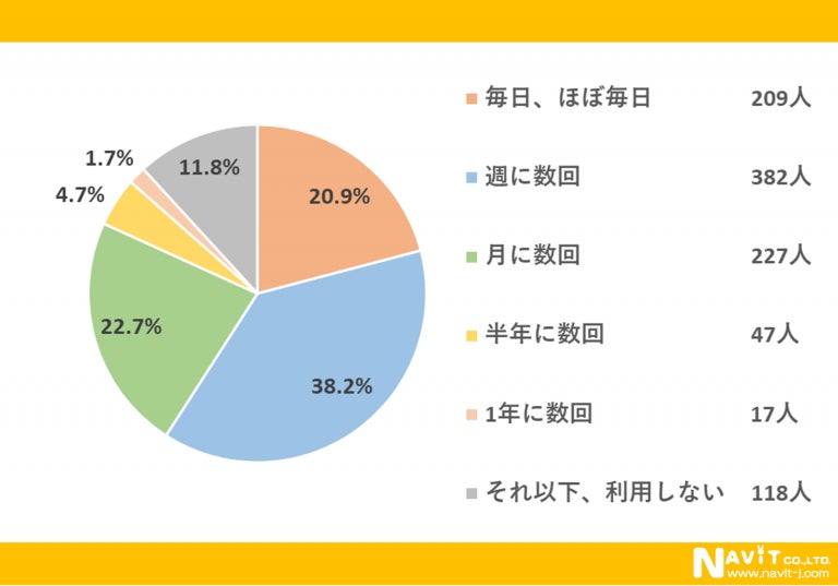 質問:どのくらいの頻度で利用しますか?(対象:1,000名)