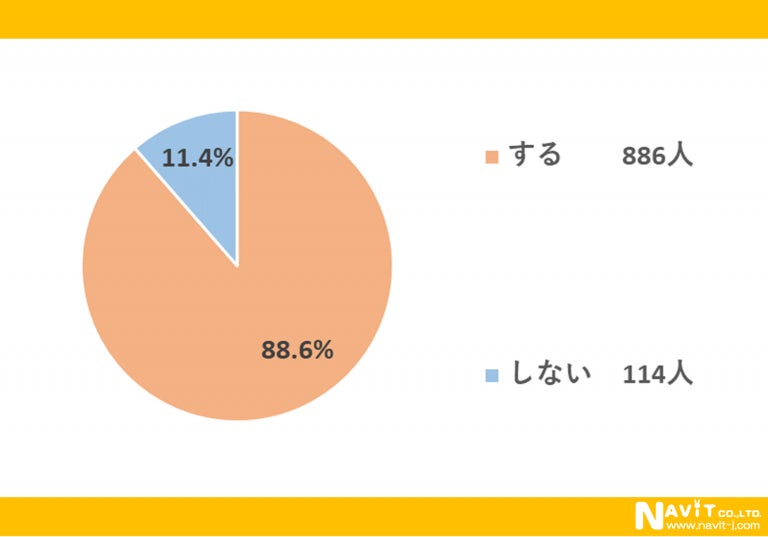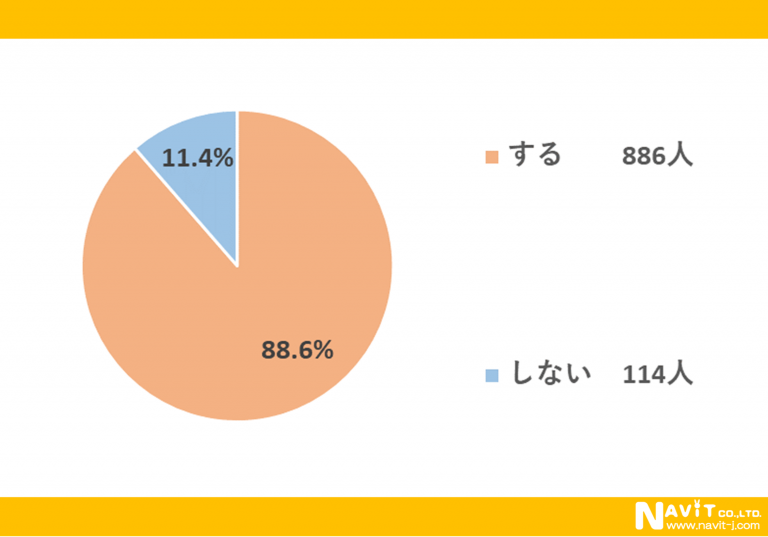電子マネーを利用するかどうかについては、「する」が88.6%、「しない」が11.4%という結果になりました。