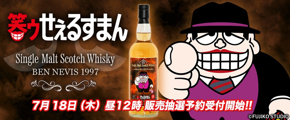 藤子不二雄(A)生誕90年にあたる今年、『笑ゥせぇるすまん』ラベル・ウイスキーを発売します。