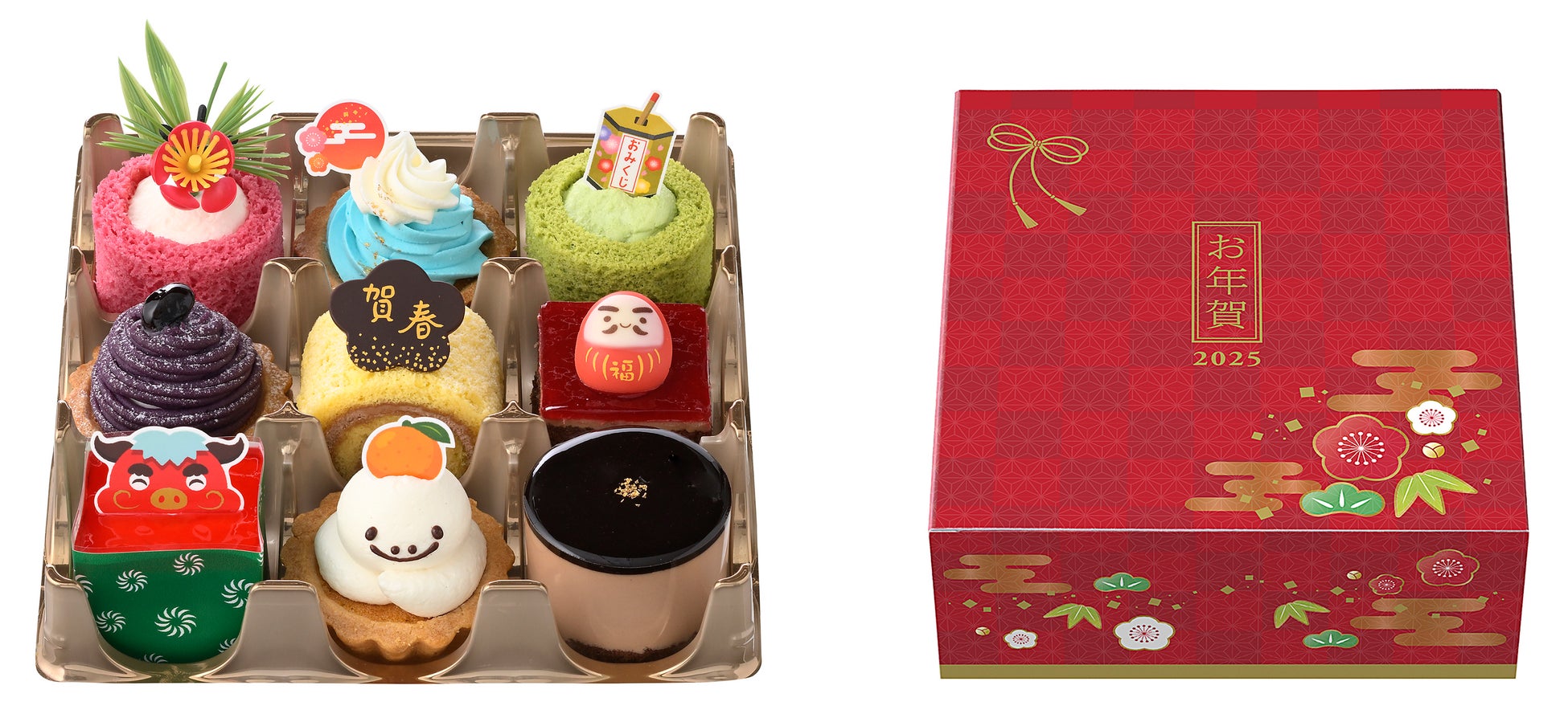 株式会社銀座コージーコーナー<代表取締役社長 船田知秀 東京都中央区>は、2024年12月31日(火)から、全国の生ケーキ取扱店(※)で「スイーツおせち(9個入、12個入)」「巳年のケーキ(鏡餅風)」「おみくじ付き初夢ケーキ」を販売します。