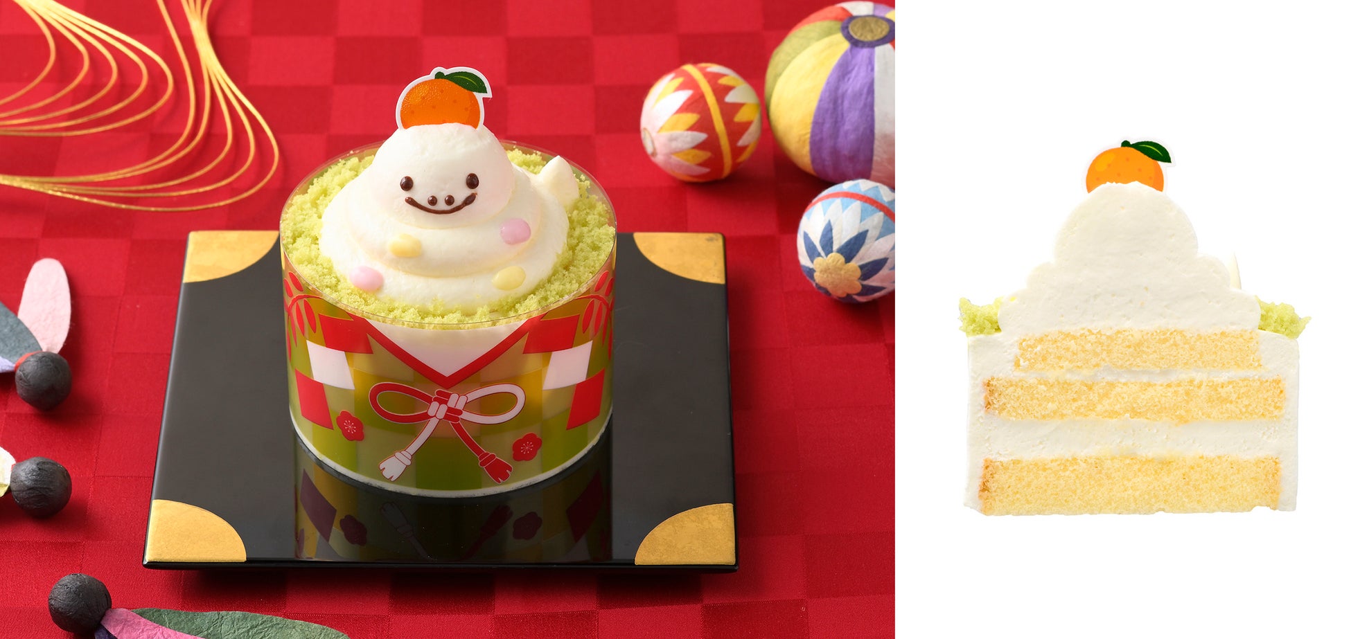 特長:2025年の「スイーツ初め」にぴったり!2025年の干支の”巳(み)”をモチーフにした縁起のいいお正月限定ケーキです。チーズ風味クリームをスポンジでサンドし、チーズ風味クリームと生クリーム入りホイップクリームで巳を鏡餅風に表現しました。スポンジのふんわり食感と、2種類のクリームの風味をお楽しみください。おせち料理のあとはスイーツで、みんなにっこりスイーツ初め♪