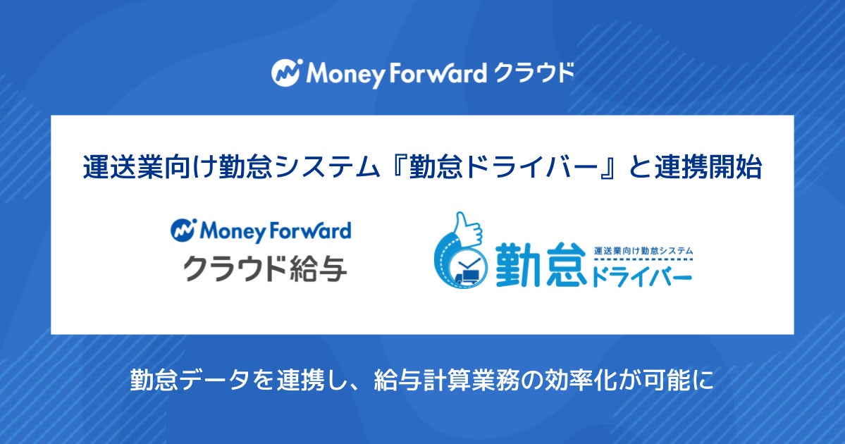 株式会社マネーフォワードは、給与計算ソフト『マネーフォワード クラウド給与』において、株式会社ロジ勤怠システムが提供する運送業向け勤怠システム『勤怠ドライバー』との連携を開始します。
