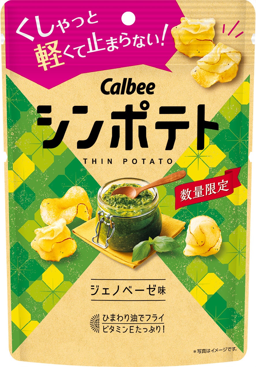 カルビー最薄ポテトチップスから新フレーバーが数量限定で登場!バジルの香りとチーズのコクが堪能できる『シンポテト ジェノベーゼ味』