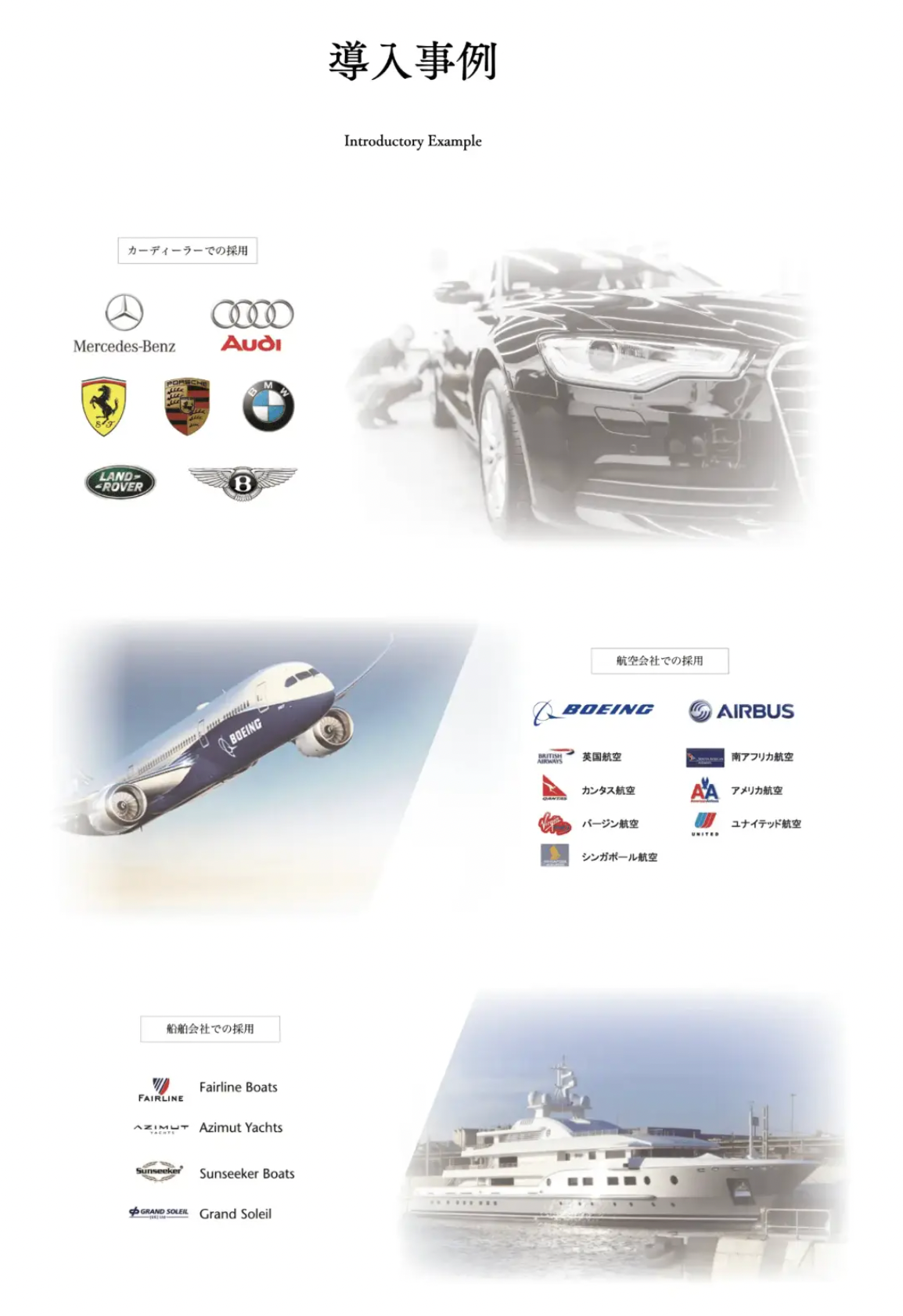 イギリス発祥のAグレーズは、欧州にてガラスコーティングからポリマーコーティングへトレンドが10年以上前から移る中、高い技術と品質でマーケットを牽引し、大手カーメーカー・飛行機メーカー・米軍・新幹線など、多方面での採用が進んでいます。