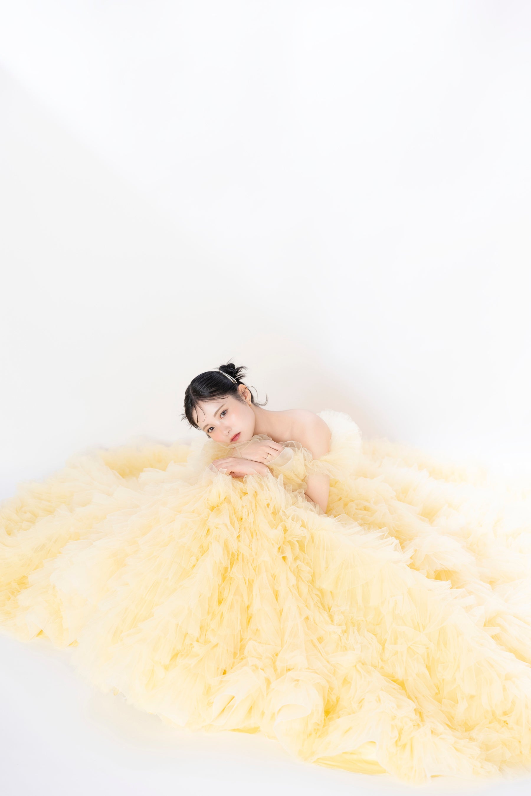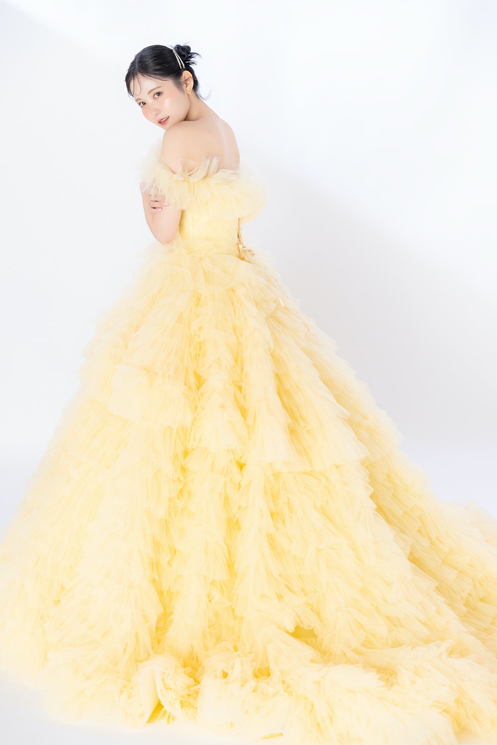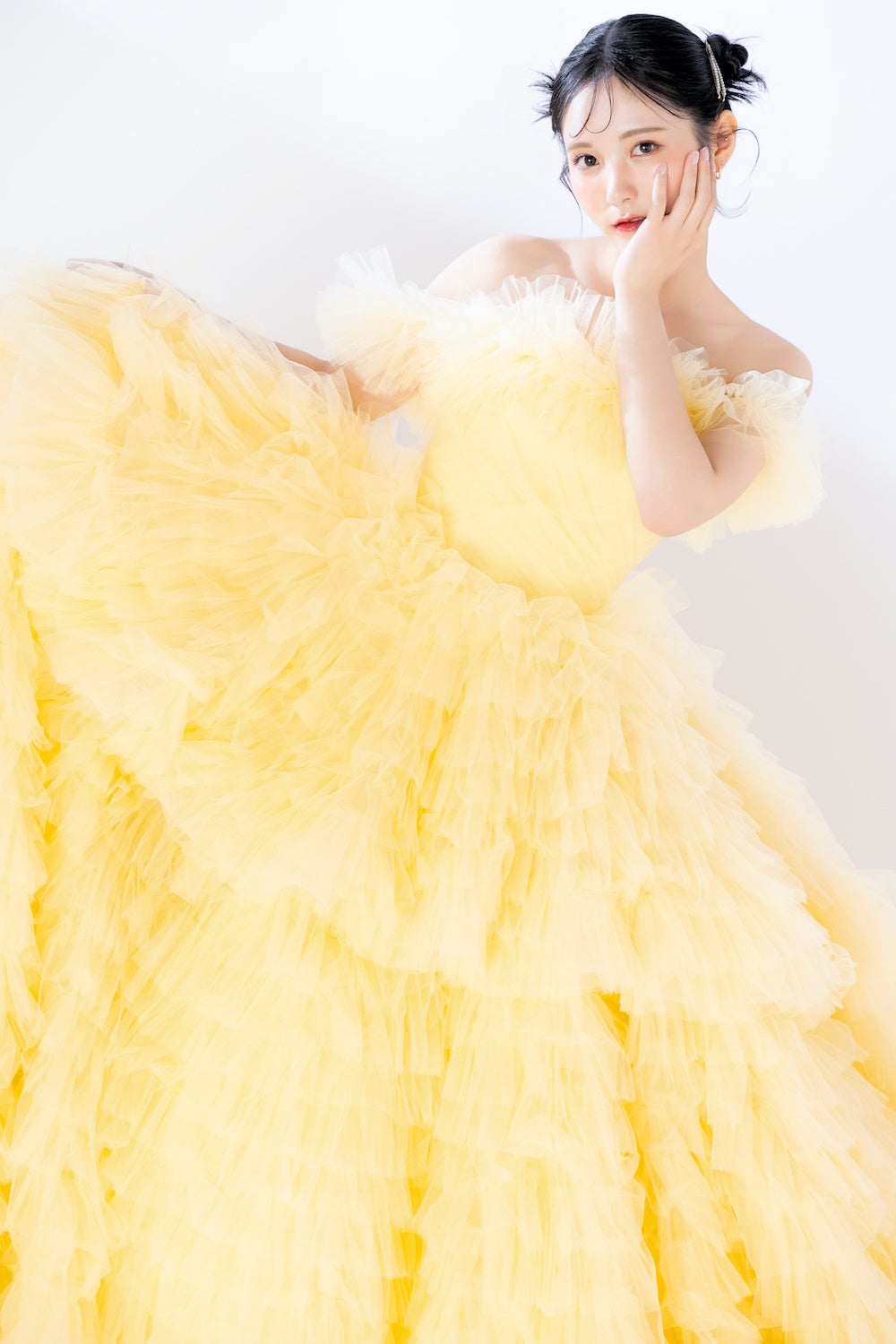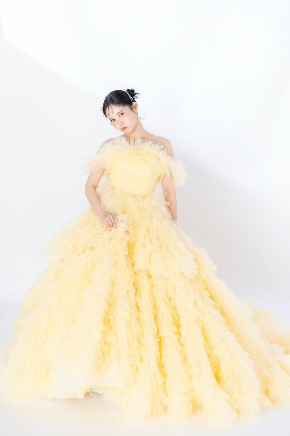 ふわふわなチュールがたくさん重なった、ボリューム感たっぷりの最新作カラードレス。