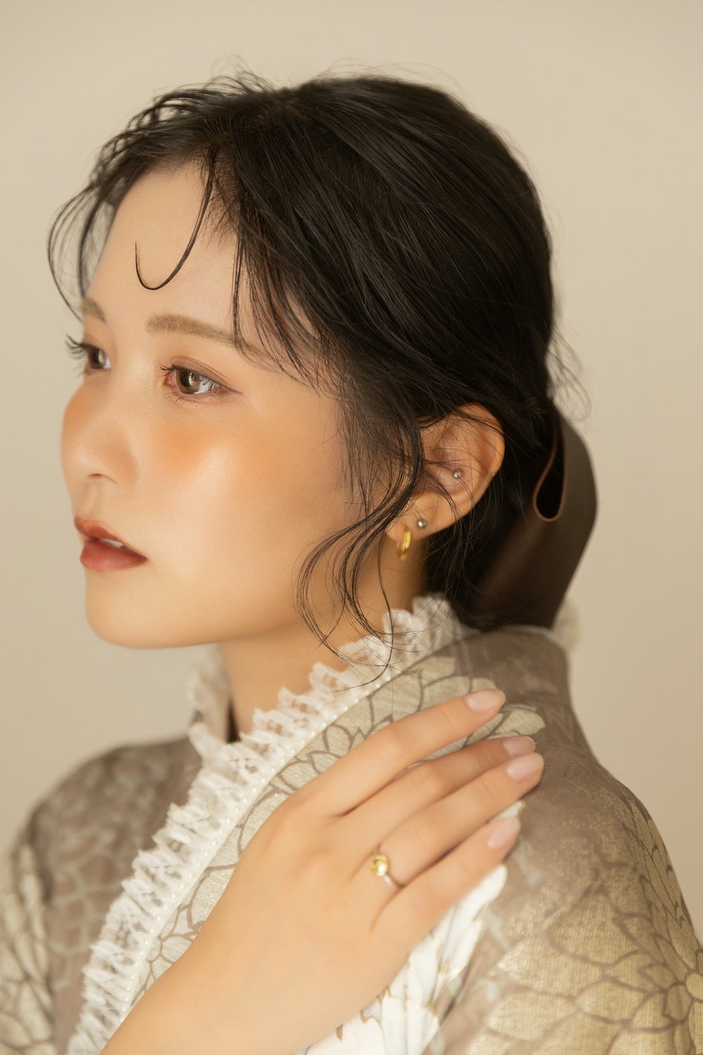 落ち着いたトーンの中にも、チークをふんわり入れてガーリーさを出しました。