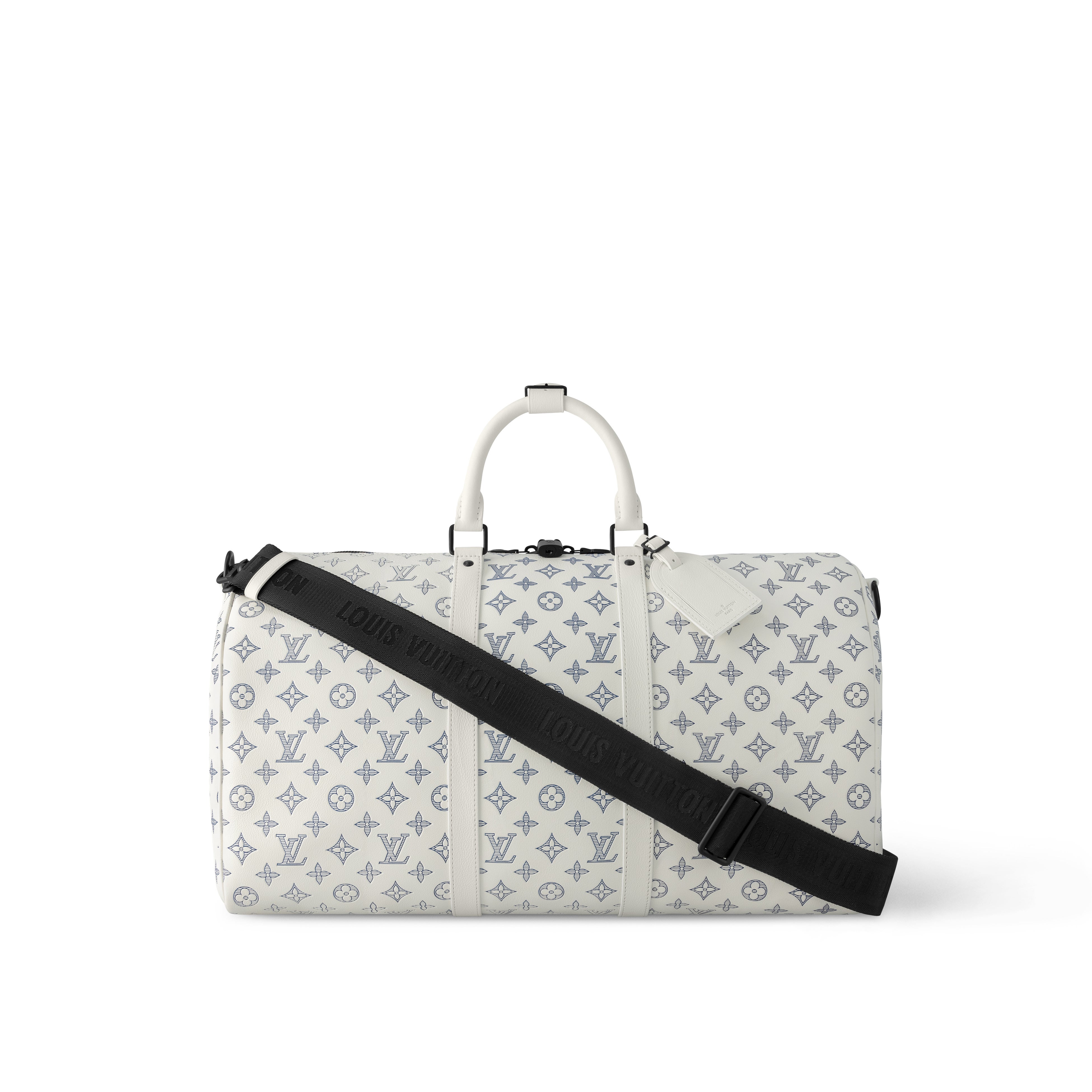 旅行鞄をスポーティな雰囲気で再解釈した「キーポル・バンドリエール 50」は、柔らかいカーフレザーにモノグラム・パターンをエンボスし、その上にコントラストカラーでモチーフをプリントしました。この工程がデザインに奥行きを添えています。客室に持ち込みできるサイズのアイテムです(但し、航空会社・機材によって客室持ち込み手荷物の条件は異なる場合があります)。
