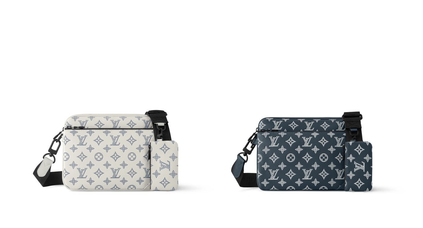 コインパースとメインコンパートメント、取外し可能なフロントポケットの3つを一体化した「トリオ・メッセンジャー」は、それぞれは単体でも使用可能です。しなやかなカーフレザーにモノグラム・パターンをエンボスし、その上にプリントを施しました。マットな質感がマスキュリンな雰囲気を演出します。