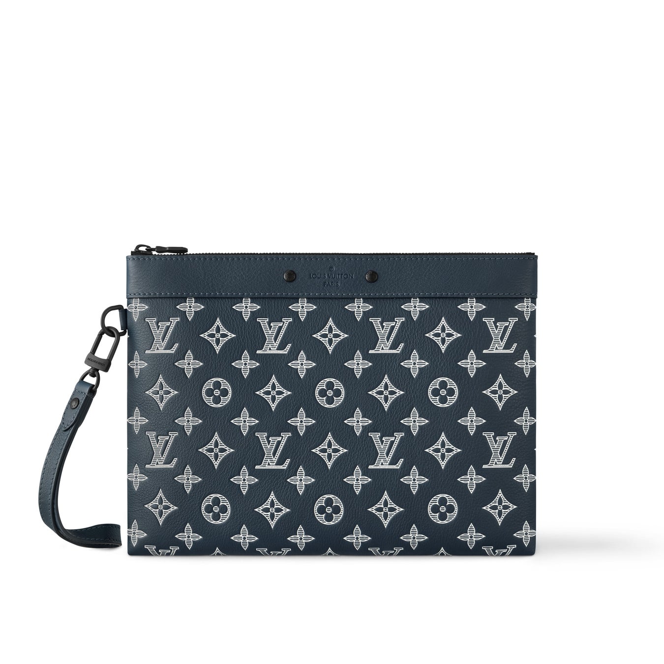 エンボス加工の上に施したモノグラム・パターンのプリントがポップな表情を演出する、ツートーンカラーのモノグラム・シャドウ レザーで仕立てた「ポシェット・トゥ・ゴー」。クールな印象のファスナー付きポーチはクラッチバッグとして、または取外し可能なリストストラップで手首に掛けても楽しめます。書類やスマートフォン、身の回りの必需品まで入れられる収納力が魅力です。