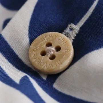 アロハシャツに馴染む木目調の別注ボタンには、NEWYORKERのロゴが施されています。