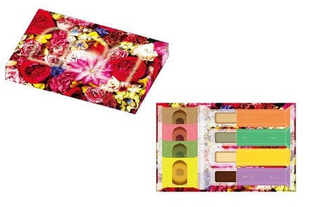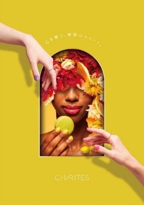 彩りを司る女神の三姉妹がわいわいとお菓子を取り合う、楽しくも美しい世界観を映すブランド。彼女たちが過ごす花咲く庭のような鮮やかなボックスは、実際の花の写真を加工したデザイン。花を贈る感覚で差し上げられるお菓子は、おしゃれやトレンドに敏感な方への手土産にもぴったりです。女神の手がプリントされたショッパーに美しいボックスを入れると、女神たちがお菓子を取り合うパッケージの仕掛けもユニークです。