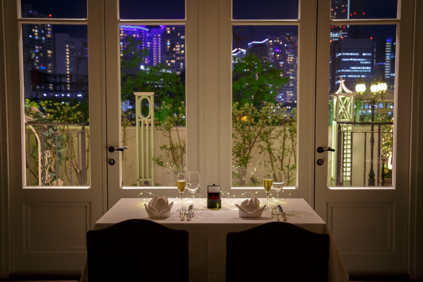 キャビア・フォアグラ・トリュフの世界三大珍味やアワビ、オマール海老といった豪華食材を贅沢に使用したクリスマス限定の特別ディナーコースをご堪能後、ライトアップされたチャペルへと移動し、ふたりきりでプロポーズを行っていただけるクリスマスシーズン限定プランを販売いたします。