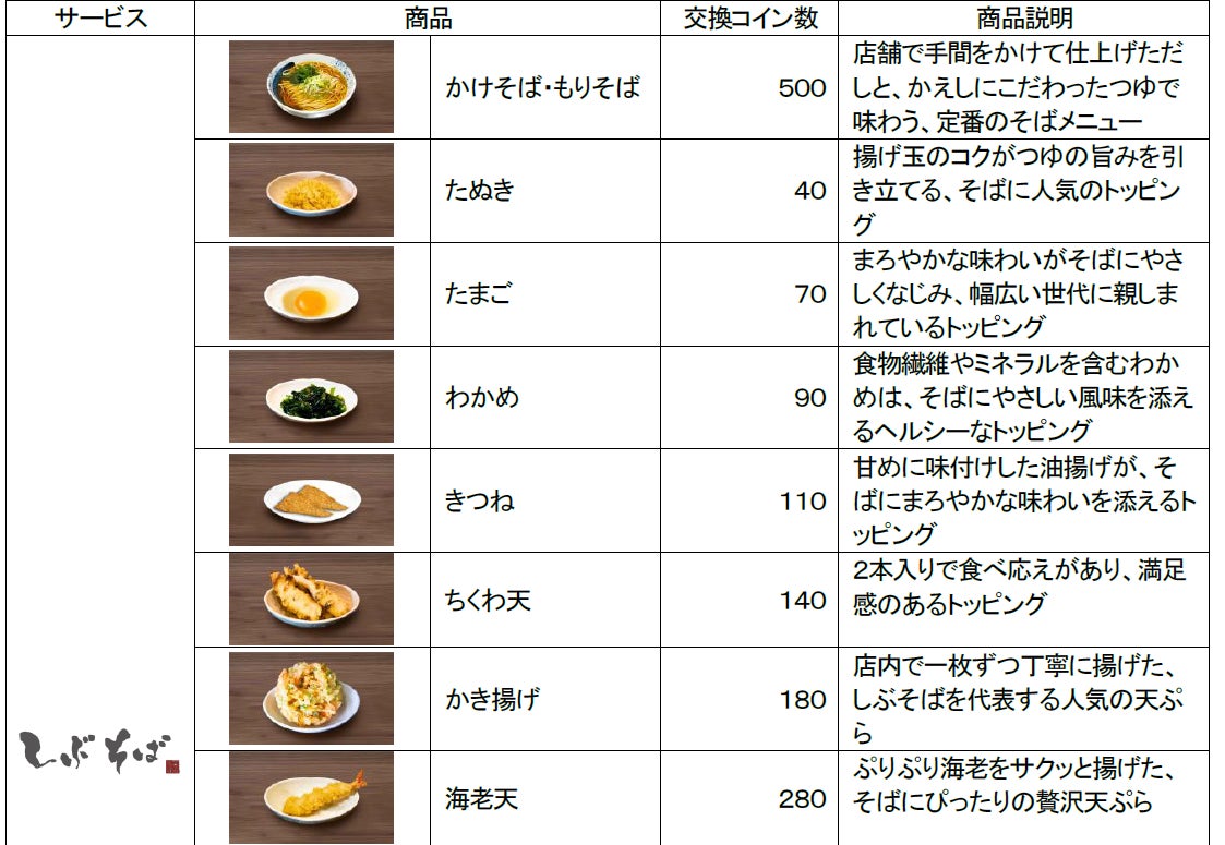 COIN」サービスで貯めたコインを、株式会社東急グルメフロント(以下、東急グルメフロント)の運営する「しぶそば」の各種商品に交換できるようになりました。