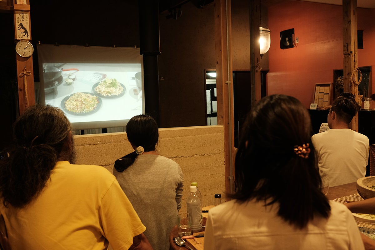 中山に滞在し、農場や養鶏場、ブリュワリーなど、食や発酵に関わる生産者や実践者をリサーチしました。滞在最終日には、言語や食文化を翻訳的視点から考察する『Translation Zone』(2019)の上映に加え、中山で出会った食材で「翻訳」をテーマにした料理を考案し、制作しました。中山での滞在や交流を通して、「都市/農村部」という二項対立の曖昧さについて考察する機会となり、新作につながる視点を得ました。