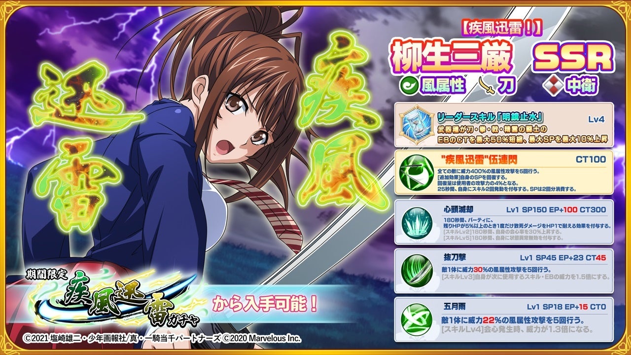 原作20周年記念アプリ 『一騎当千エクストラバースト』バーストフェス開催!「【疾風迅雷!】柳生三厳(CV:田辺留依)」が登場!
